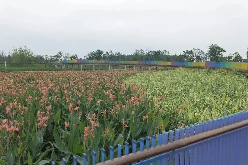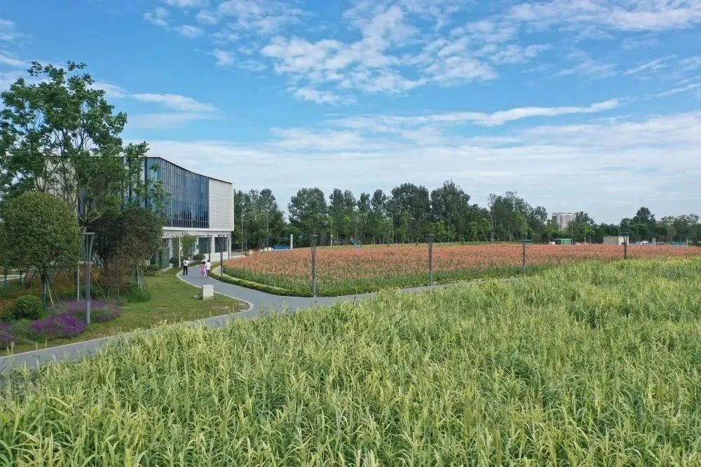在公园里,绿化景观丰富多彩,从栾树、樱花、红枫等高大乔木,到睡莲、菖蒲、芡实、荷花等20余种水生花草植物,西区中水湿地公园里种植了多种不同种类的植物。