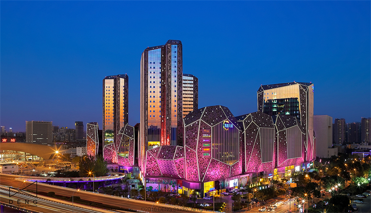 凯德天府购物中心为地表综合体,23层+18层高楼及裙楼组成。由著名设计公司WOHA和著名地产开发商凯德商用联合奉上的一道视觉盛宴,建筑以山水峡谷为设计理念。以楼为山石,且用绿化合理布局于裙楼的各个区域形成森林效果,将建筑与自然充分融为一体。项目设计充分考虑到成都城市的文化特色,成都市民展现的生活元素,甚至成都天气及气候特点可能对建筑效果造成的影响也被考虑在内,可谓将建筑作为艺术品来考究和打造。
